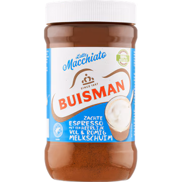 Buisman Latte Macchiato biedt een gemakkelijke manier om thuis of onderweg te genieten van een heerlijk zachte en romige koffievariant. Met deze oploskoffie creëer je snel een volwaardige latte macchiato met romig melkschuim, zonder dat je een espressomachine nodig hebt.