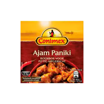 Met Conimex Boemboe ajam paniki haal je een betrouwbare en smaakvolle smaakmaker in huis waarmee je makkelijk Oosterse gerechten bereidt. De specifieke samenstelling garandeert een pittige, rijke smaak die je keuken laat stralen. Ontdek de veelzijdigheid van deze boemboe en verrijk je maaltijden met de karakteristieke Indonesische smaken die Conimex al sinds 1932 levert.