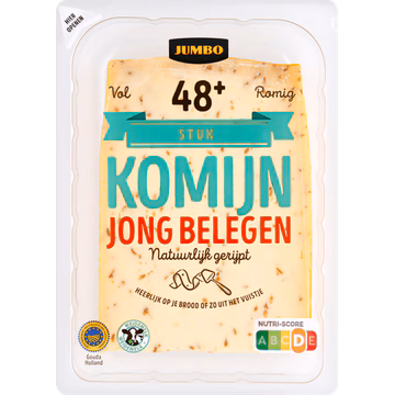 Genießen Sie den vollfetten und cremigen Gouda-Käse 48+ mit einer besonderen Würze durch 0,9% Kreuzkümmel – eine harmonische Kombination, die jeden Käseliebhaber begeistert. Dieser junge Gouda reift unter optimalen Bedingungen und bietet Ihnen ein einzigartiges Geschmackserlebnis, das sowohl pur als auch in der Küche vielseitig einsetzbar ist.
