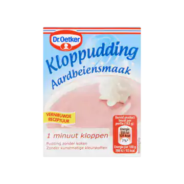 Dr. Oetker Kloppudding Aardbei biedt een snelle en eenvoudige manier om zelf een heerlijk aardbeientoetje te maken zonder te koken. Deze puddingmix zorgt voor een romige textuur en een frisse aardbeiensmaak die zowel kinderen als volwassenen aanspreekt.