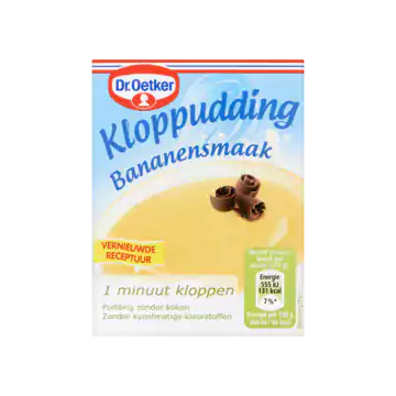 Geniet snel van een luchtig bananentoetje met deze makkelijke kloppudding. De verpakking bevat 74 gram kloppuddingpoeder, perfect voor een heerlijk romige pudding die je zonder koken bereidt. Ideaal voor een zoete traktatie na de maaltijd of tussendoor.