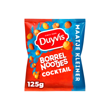 Duyvis Borrelnootjes Cocktail combineert smaak, textuur en kwaliteit in één verpakking van 125 gram. Zo heb je altijd een smakelijke snack binnen handbereik die je borrelmoment compleet maakt.