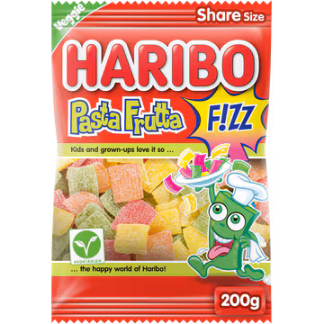 Haribo Pasta Frutta F!ZZ is een smaakvolle traktatie die frisheid en fruitigheid samenbrengt, perfect voor jong en oud die genieten van een zoet-zure snack. Met de diverse fruitsmaken en zachte textuur biedt deze mix een plezierige afwisseling voor elke zoetekauw.