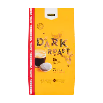 Ontdek de rijke en intense smaak van Jumbo Dark Roast koffiepads, speciaal samengesteld voor wie houdt van een krachtige koffiebeleving. Met 56 koffiepads in één verpakking geniet je langdurig van gemak en kwaliteit, waar je ook bent in de wereld.