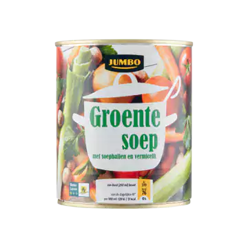 De Jumbo Groentesoep biedt een makkelijke en smakelijke oplossing voor een gezonde maaltijd, waar u ook bent. Met een inhoud van 800 ml is deze soep ruim voldoende voor meerdere porties, zodat u snel kunt genieten van een voedzame en warme groentesoep.