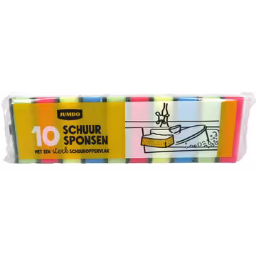De Jumbo Schuursponsen worden geleverd in een verpakking van 10 stuks, ideaal voor diverse schoonmaaktaken in en om het huis. Deze sponsen zijn ontworpen voor effectief schuren, waardoor hardnekkig vuil eenvoudig wordt verwijderd zonder veel inspanning.