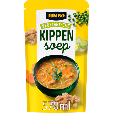 Ontdek de smaakvolle en voedzame Jumbo Vegetarische Kippensoep, speciaal ontwikkeld voor liefhebbers van een vegetarische levensstijl die niet willen inleveren op smaak of gemak. Met een royale inhoud van 570 ml is deze soep ideaal om snel een lekkere en verantwoorde maaltijd op tafel te zetten.