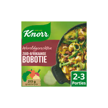 Met het Knorr Wereldgerechten Bobotie Maaltijdpakket haal je een authentieke Zuid-Afrikaanse smaakervaring in huis. Deze maaltijdmix helpt je eenvoudig een traditionele Bobotie te bereiden, perfect voor iedereen die nieuwe smaken wil ontdekken of nostalgisch verlangt naar Zuid-Afrikaanse gerechten.