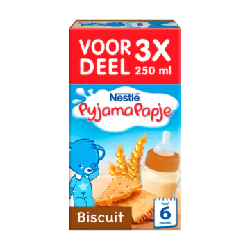 Nestle Pyjamapapje Biscuit biedt een smakelijke en gemakkelijke manier om uw baby een voedzame maaltijd te geven. Dit kant-en-klare papje combineert granen en melk met een subtiele biscuitsmaak, perfect voor het slapen gaan of als aanvulling op het dagelijkse dieet.