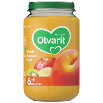 Bestel Olvarit Perzik Banaan Kiwi 6+ eenvoudig online en geef je kindje een lekkere start met verantwoord fruitvoedsel.