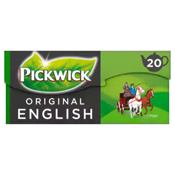 Pickwick Original English, meerkops: Deze verpakking bevat 20 theezakjes van elk 4 gram, speciaal samengesteld voor liefhebbers van traditionele Engelse zwarte thee. De thee biedt een volle en rijke smaak die perfect is voor elk moment van de dag.