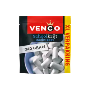 Venco Schoolkrijt XL biedt een bijzondere smaaksensatie dankzij de combinatie van een frisse, krokante mintlaag en een zachte, anijsachtige vulling. Dit maakt het een onweerstaanbare traktatie voor iedereen die van drop houdt en iets nieuws wil proberen.